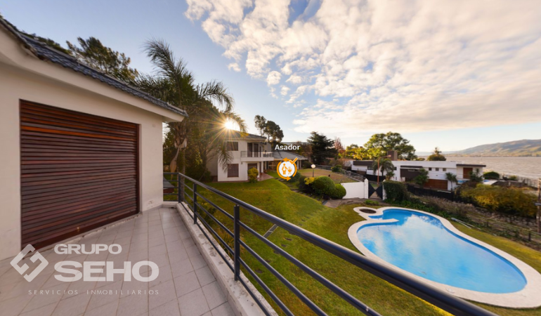 . En planta alta 3 dormitorios amplios con placard con interiores, 2 baño uno en suite, balcón circundante con vistas panorámicas al lago y a las sierras.